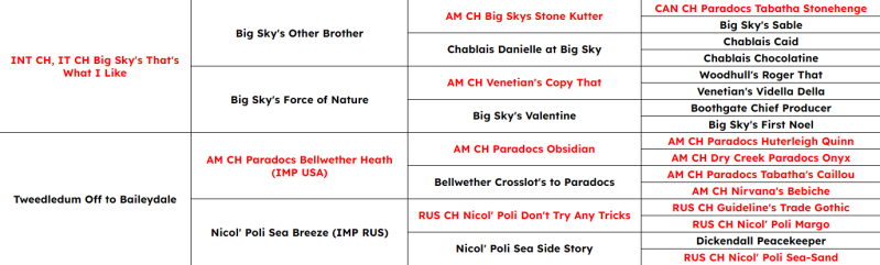 SH CH Baileydale Dizzy Miss Lizzy Pedigree